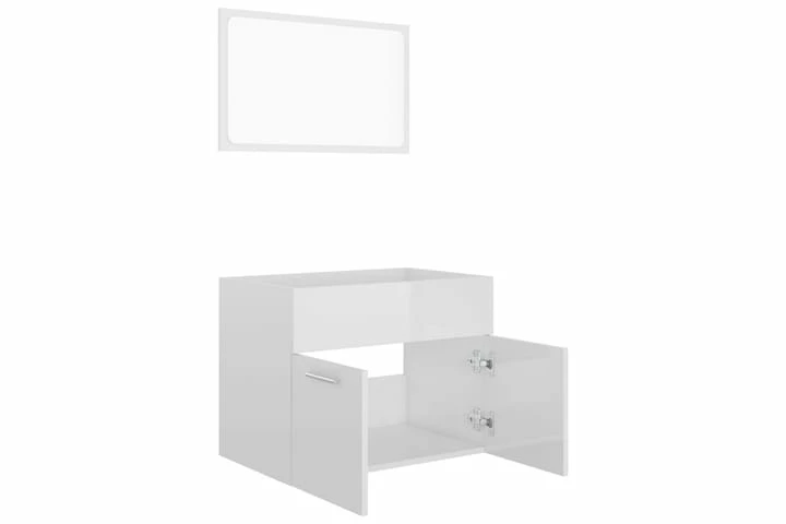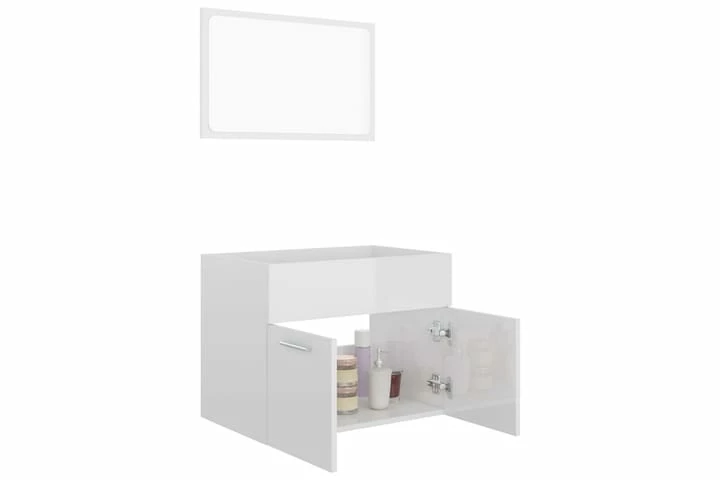 Møbelsættet har et spejl og et skab, og det er fremstillet af slidstærke og stabile spånplader. Dette flotte skab har 1 rum og 2 låger og giver rigelig plads til opbevaring af ting på dit badeværelse. Toppen af skabet er ideelt til en håndvask. Spejlet tilføjer et fremragende look i din boligindretning. Dette badeværelsessæt er desuden let at rengøre med en fugtig klud.
