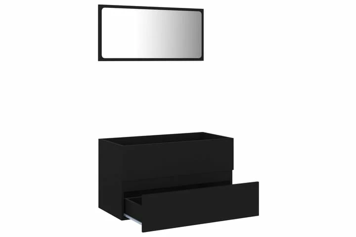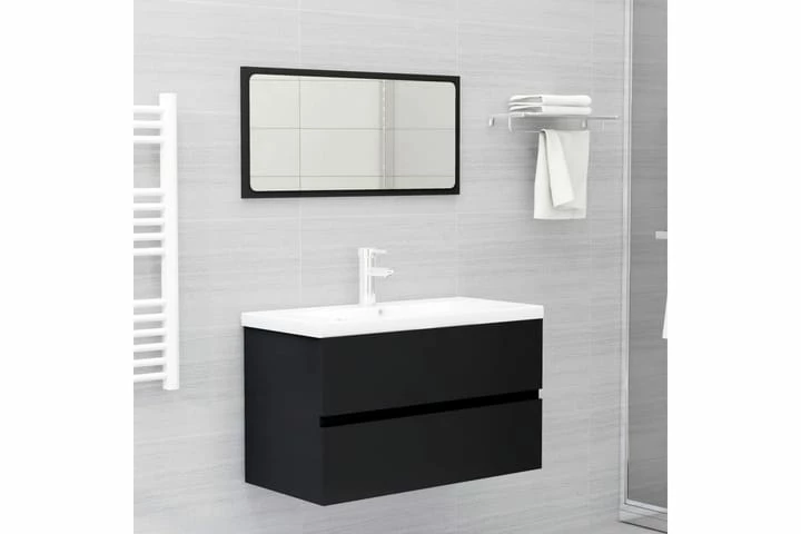 Møbelsættet har et spejl og et skab, og det er fremstillet af slidstærke og stabile spånplader. Dette flotte skab har 1 skuffe, som giver rigelig plads til opbevaring af ting på dit badeværelse. Toppen af skabet er ideelt til en håndvask. Spejlet tilføjer et fremragende look i din boligindretning. Dette badeværelsessæt er desuden let at rengøre med en fugtig klud.