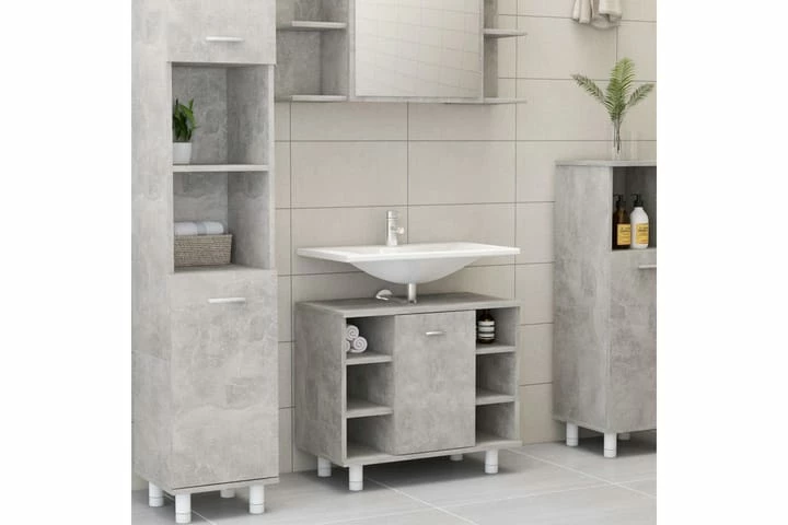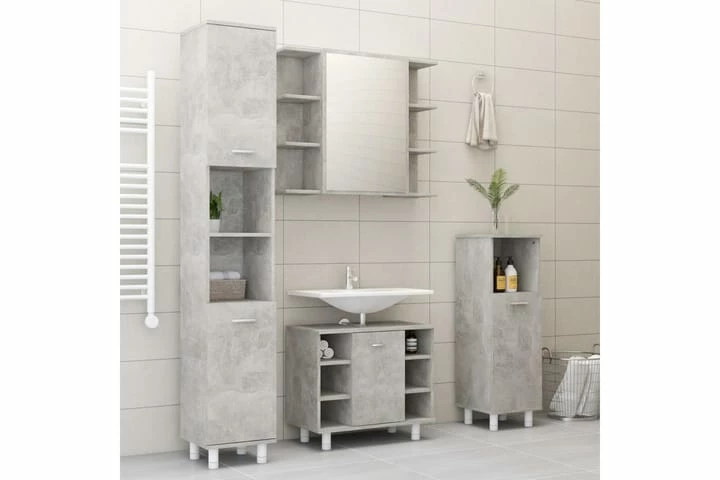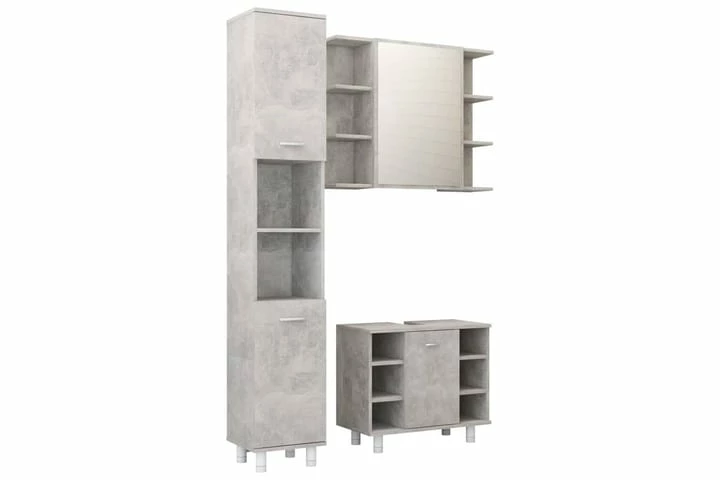 Dette sæt er lavet af spånplader i høj kvalitet, så det er holdbart og stabilt. Det flotte højskab har 6 rum og 2 låger og giver dig masser af mulighed for opbevaring af ting og sager på dit badeværelse. Vaskeskabet har 7 rum og 1 låge, så det giver rigelig med plads til opbevaring af dine toiletsager, skønhedsprodukter og småting. Spejleskabet har 1 låge og 8 rum i alt. De 6 udvendige rum og 2 indvendige rum giver ekstra plads, så de nemt kan rumme dine badeprodukter. Spejlet vil passe flot til din eksisterende badeværelsesindretning. Derudover er dette badeværelsessæt let at rengøre med en fugtig klud.