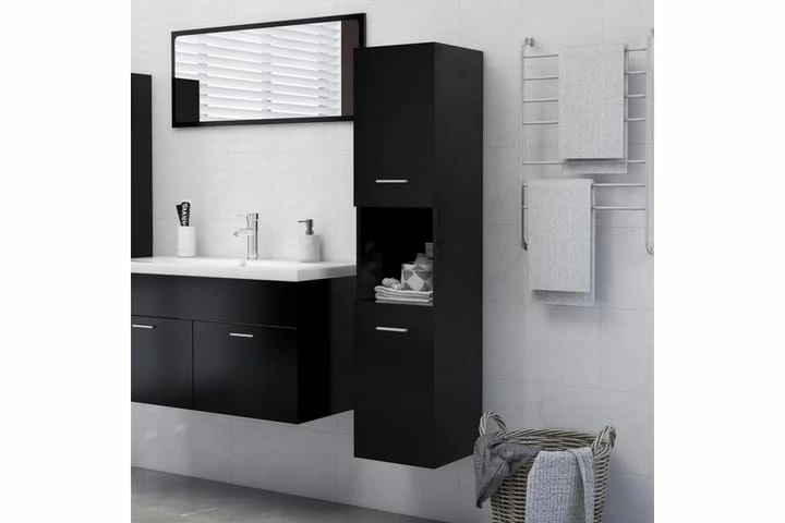 Dette flotte skab er fremstillet af spånplader, hvilket gør det robust og stabilt. Vægskabet har 5 rum og 2 låger, så det tilbyder forskellige opbevaringsmuligheder og ekstra plads til opbevaring af ting på dit badeværelse. Skabet er desuden let at rengøre med en fugtig klud.