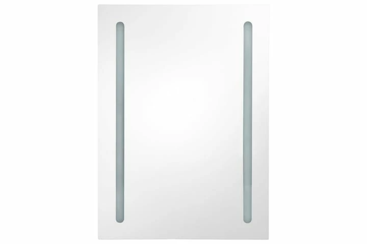 Dette vægskab er fremstillet af MDF-plade i høj kvalitet med en melaminfinish, hvilket sikrer, at det kan holde til mange års brug. Ved hjælp af det energieffektive LED-lysbånd kan du se dig selv i det rigtige lys, når du skal lægge makeup og pleje dig selv og din hud. Indvendigt har skabet 3 hylder, som giver dig rigeligt med plads til opbevaring af toiletartikler og skønhedsprodukter. Du kan let tænde og slukke lyset på knappen i bunden af skabet. Dette skab er stilfuldt og funktionelt, og det er et enestående supplement til din indretning.