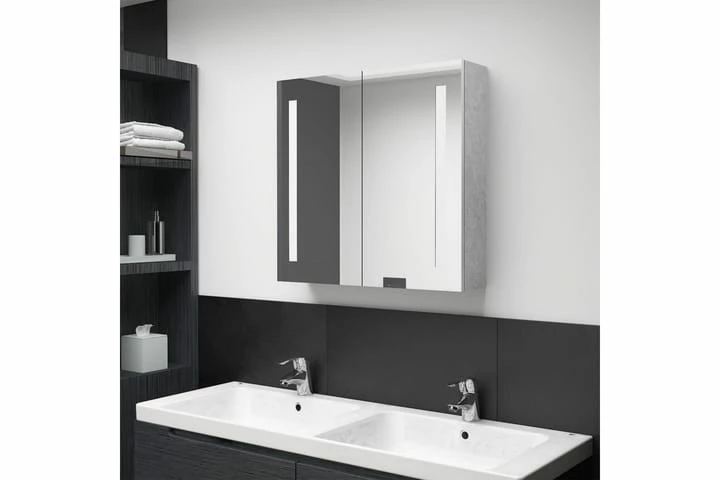 Skabet er lavet af MDF-plade i høj kvalitet med melaminfinish, hvilket sikrer, at det kan holde til langvarigt brug. Med de dobbelte, energieffektive LED-lysbånd kan du se dig selv i det rigtige lys, når du skal lægge makeup og pleje dig selv og din hud, og de kan oplyse dit lokale, dit ansigt og dit smil. Du kan let tænde og slukke lyset på knappen i bunden af skabet. Derudover er der tre hylder inde i skabet bag de to låger, hvilket tilbyder rigeligt med opbevaringsplads på badeværelset. De kan nemt rumme dine vigtige toilet- og badeartikler såsom sæber, shampoo, tandpasta mv. Dette skab er stilfuldt og funktionelt, og det vil være et enestående supplement til dit interiør.