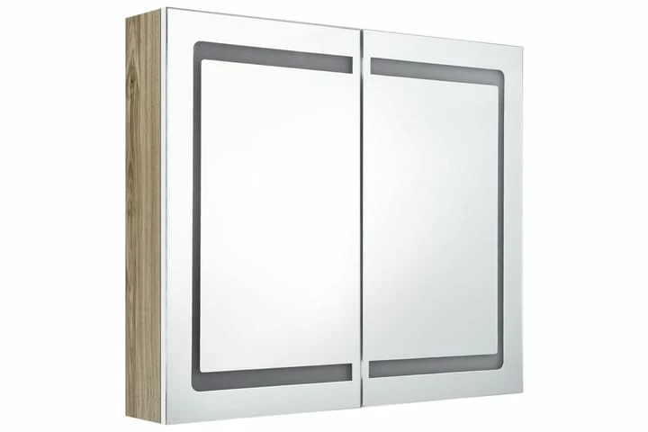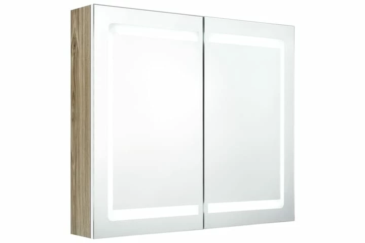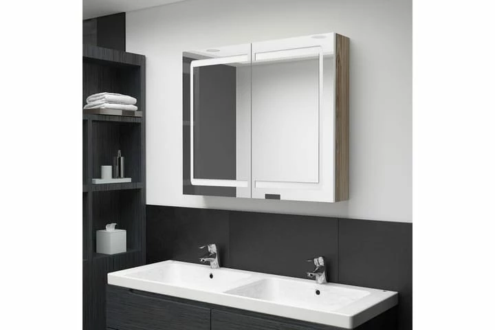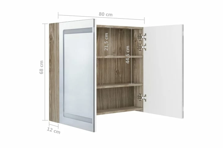 Dette vægskab er lavet af MDF-plade af høj kvalitet med melaminfinish, hvilket sikrer, at det kan holde til langvarigt brug. Det er forsynet med et energieffektivt LED-lysbånd, så du kan se dig selv i det rigtige lys, når du skal lægge makeup og pleje dig selv og din hud, og det kan oplyse rummet, dit ansigt og dit smil. Du kan let tænde og slukke lyset på knappen i bunden af skabet. Derudover er der tre hylder inde i skabet bag de to låger, hvilket tilbyder rigeligt med opbevaring på badeværelset. De kan nemt rumme dine vigtige toilet- og badeartikler såsom sæber, shampoo, tandpasta mv. Dette skab er stilfuldt og funktionelt, og det vil være et enestående supplement til dit interiør.