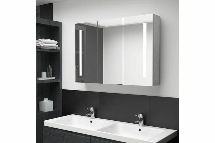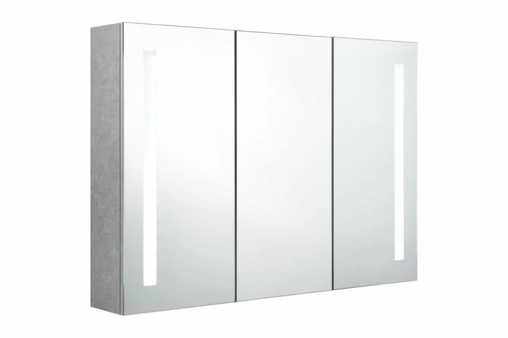 Skabet er fremstillet af MDF-plader i høj kvalitet med melaminfinish, hvilket sikrer, at det kan holde til langvarigt brug. Med de dobbelte, energieffektive LED-lysbånd kan du se dig selv i det rigtige lys, når du lægger makeup og plejer dig selv og din hud, og de kan oplyse dit lokale, dit ansigt og dit smil. Du kan let tænde og slukke lyset på knappen i bunden af skabet. Derudover er der 5 hylder inde i skabet bag de 3 låger, hvilket tilbyder rigeligt med opbevaringsplads på badeværelset. De kan nemt rumme dine vigtige toilet- og badeartikler såsom sæber, shampoo, tandpasta mv. Dette skab er stilfuldt og funktionelt, og det er et enestående supplement til dit interiør.