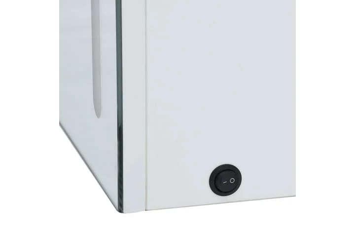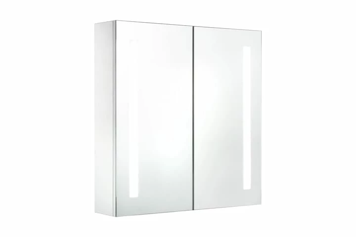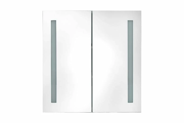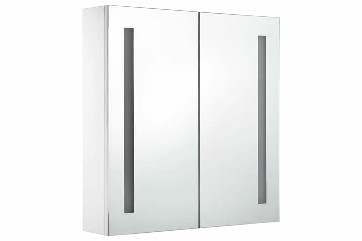 Tilfør dit badeværelse en æstetisk atmosfære med dette skab, som har et spejl og LED-lys. Vores badeværelsesskab med LED vil tilføre et strejf af moderne stil og blødt lys til ethvert rum! Skabet er lavet af MDF-plade i høj kvalitet med melaminfinish, hvilket sikrer, at det kan holde til langvarigt brug. Med de dobbelte, energieffektive LED-lysbånd kan du se dig selv i det rigtige lys, når du skal lægge makeup og pleje dig selv og din hud, og de kan oplyse dit lokale, dit ansigt og dit smil. Du kan let tænde og slukke lyset på knappen i bunden af skabet. Derudover er der tre hylder inde i skabet bag de to låger, hvilket tilbyder rigeligt med opbevaringsplads på badeværelset. De kan nemt rumme dine vigtige toilet- og badeartikler såsom sæber, shampoo, tandpasta mv. Dette skab er stilfuldt og funktionelt, og det vil være et enestående supplement til dit interiør. Skabet er let at montere på væggen.