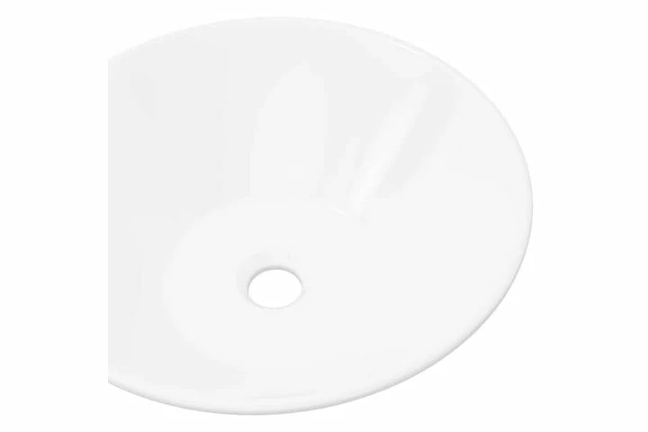 Denne håndvask har et skinnende hvidt look og tilbyder en unik, moderne stil til ethvert badeværelse. Med skrånende sidevægge, en flad bund og glatte kurver bidrager vasken med et moderne design til dit badeværelse. Vasken er lavet af keramik af høj kvalitet, hvilket forhindrer den i at ridse eller flise.