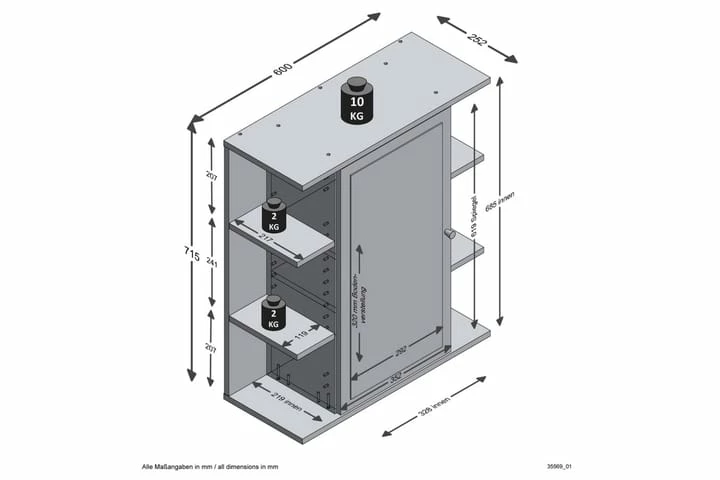 - Mål: 60 x 25,2 x 71,5 cm (B x D x H)