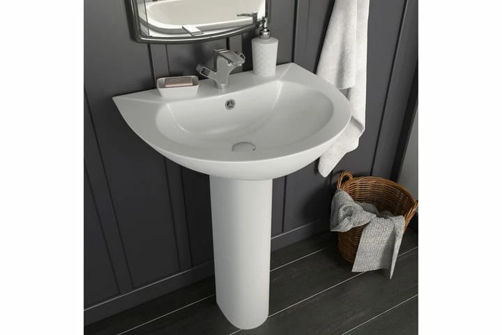 Denne fritstående keramikvask med piedestal vil være en fantastisk tilføjelse til ethvert badeværelse eller toilet.