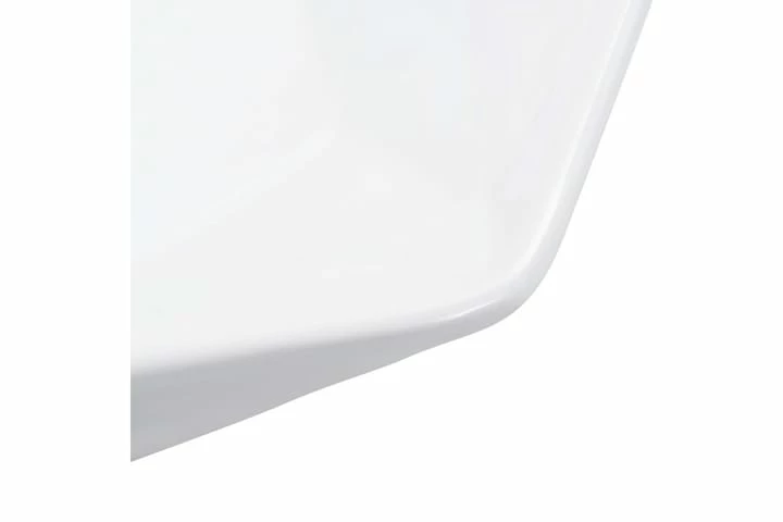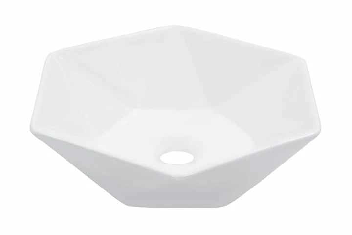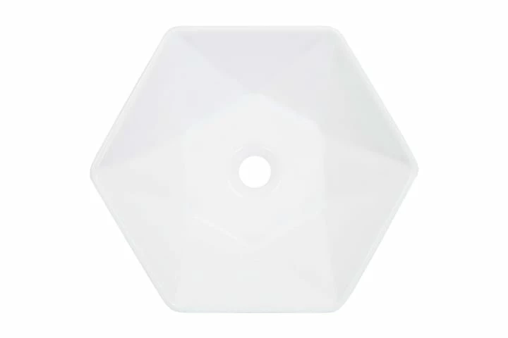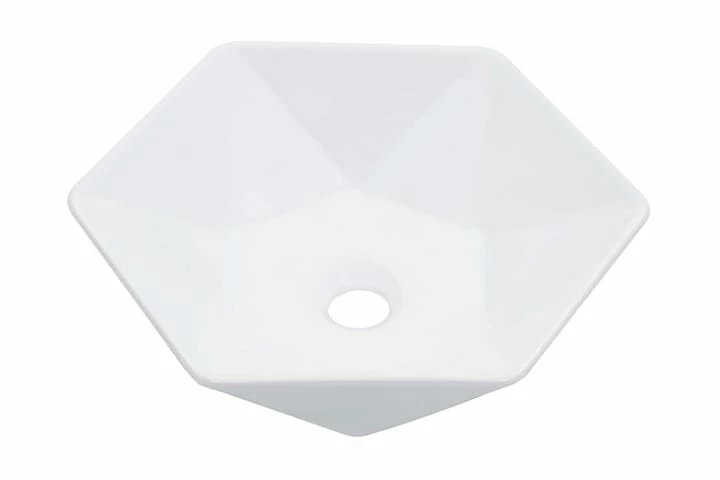 Denne sekskantede håndvask er lavet af keramik, og den vil være en chik og tidløs tilføjelse til ethvert badeværelse eller toilet.