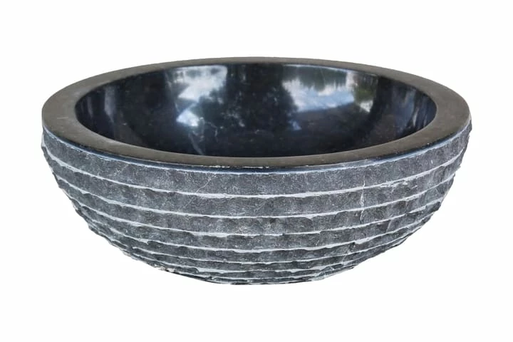 Denne runde håndvask er lavet af naturlig marmor og den vil være et stilfuldt supplement til ethvert badeværelse eller toilet. Denne kunstneriske håndvask af natursten er ikke kun en praktisk vask til daglig brug, men en dekoration af din bolig. Den groft udformede, udvendige overflade med et dekorativt stribemønster tilføjer et rustikt look til håndvasken. På den anden side gør vaskens runde form den elegant og blød. Den markante modvægt til den rå, men alligevel elegante udvendige overflade gør denne vask unik og kunstnerisk. Den indvendige overflade er glatpoleret, hvilket gør rengøring virkelig let. Afløbshullet er 4 cm i diameter. Bemærk venligst, at der ikke medfølger et afløb i pakken.