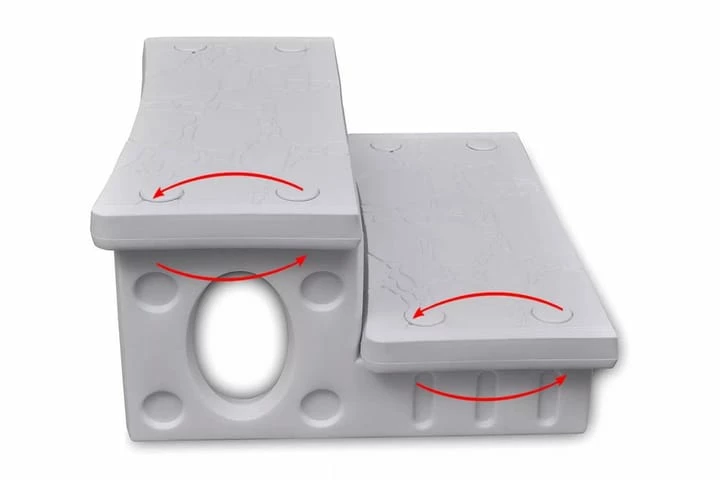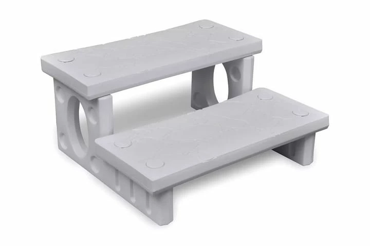 Disse robuste, høj kvalitet spa trin med en skridsikker overflade vil give dig en bekvem måde at få adgang til din varmt karbad.Disse trin har 2 vendbare slidbaner hver med en lige og en buet kant, hvilket gør dem egnede til både flade vægge og cirkulære boblebade.Lavet af høj kvalitet, stærk, tyk plastic, er disse trin, let, men alligevel stærk.
