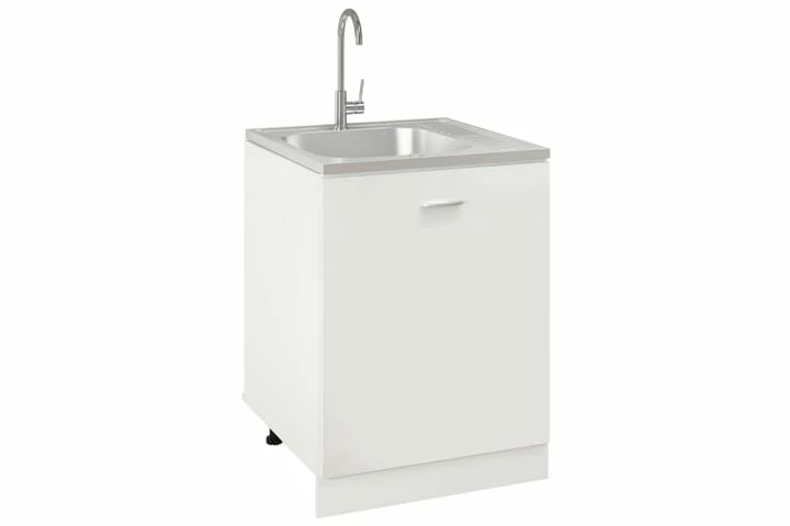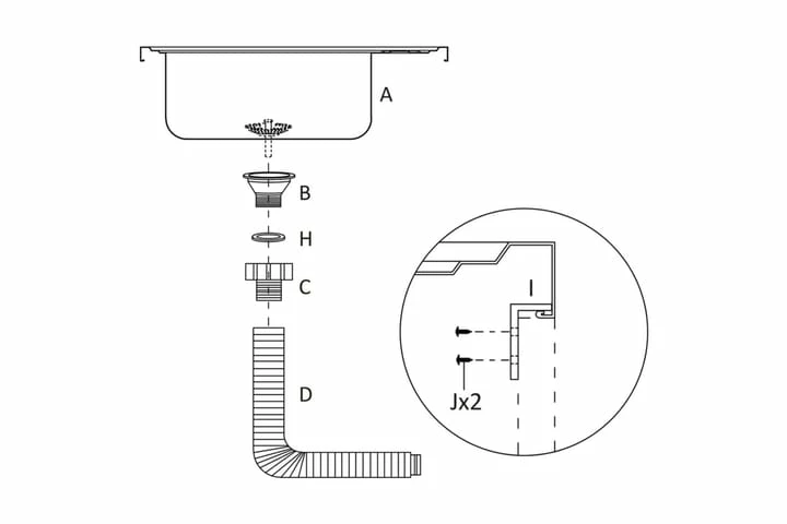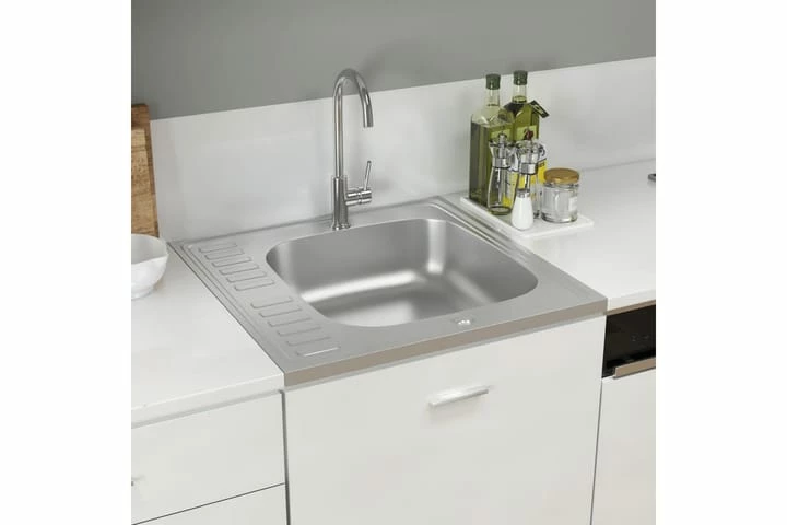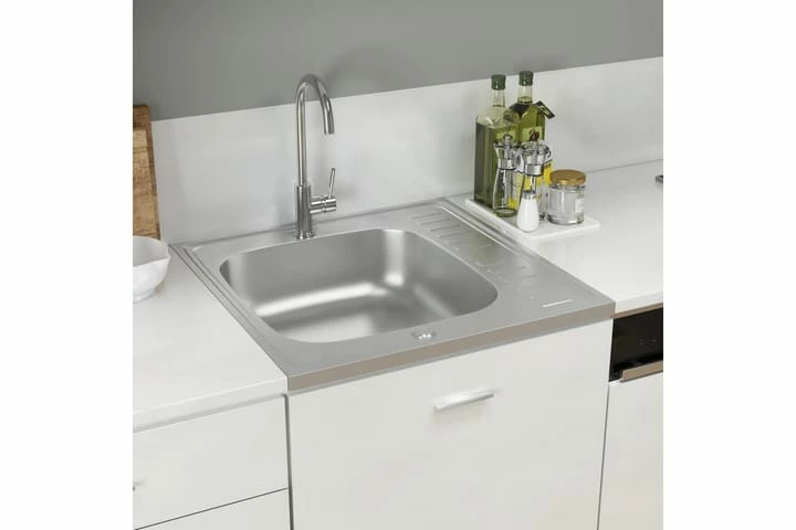 Vasken er lavet af SUS (rustfrit stål), hvilket gør den varmebestandig, ridsefast og stødsikker og også let at rengøre. Den har ekstra tykke sider, der kan placeres oven på et vaskeskab, og sideafløbey giver dig ekstra plads til din opvask. Det har også afløbsrør, så det kan sættes i 2 sider på grund af vandhanehullerne på begge sider. Da vasken er helt vendbar, kan vandhanen monteres enten til venstre eller højre for vaskebassinet.