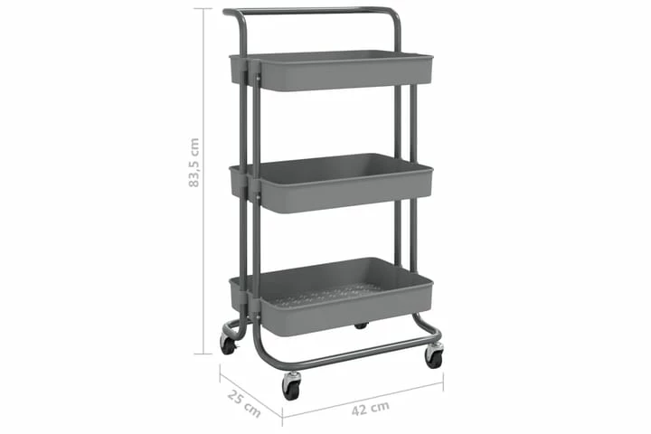 Denne køkkenvogn med praktisk håndtag er lavet af stærk ABS-plast med jernrør, som gør den robust og holdbar. Den pladsbesparende vogn har 4 hjul, hvoraf to af dem har bremser, hvilket gør det nemt at flytte vognen, samt sikre, at den ikke ruller væk. De aftagelige kurve er stærke nok til at blive brugt som ekstra opbevaringsplads, så du kan få fuldt udbytte af rummet. Vognen er ideel til opbevaring af legetøj, nøgler, madvarer mv.