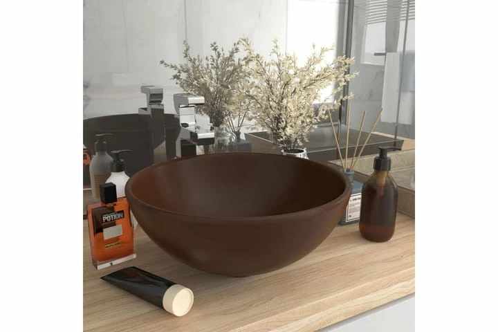 Denne runde håndvask er lavet af keramik i høj kvalitet, og den vil være en perfekt og stilfuld tilføjelse på ethvert badeværelse eller toilet. Den matte overflade og det luksuriøse design tilføjer et moderne, men elegant design.