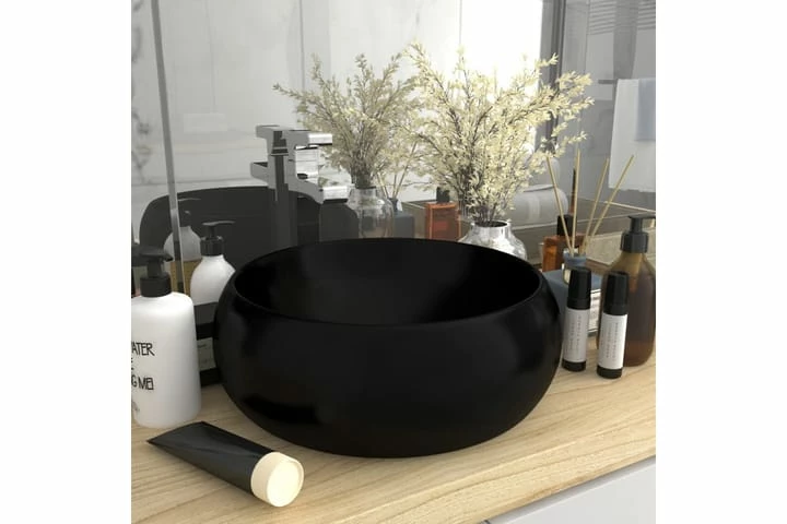 Vores runde håndvask er lavet af keramik i høj kvalitet, og den vil være en stilfuld og tidløs tilføjelse på ethvert badeværelse, toilet eller bryggers. Den matte overflade og det luksuriøse design giver et moderne, men elegant look.