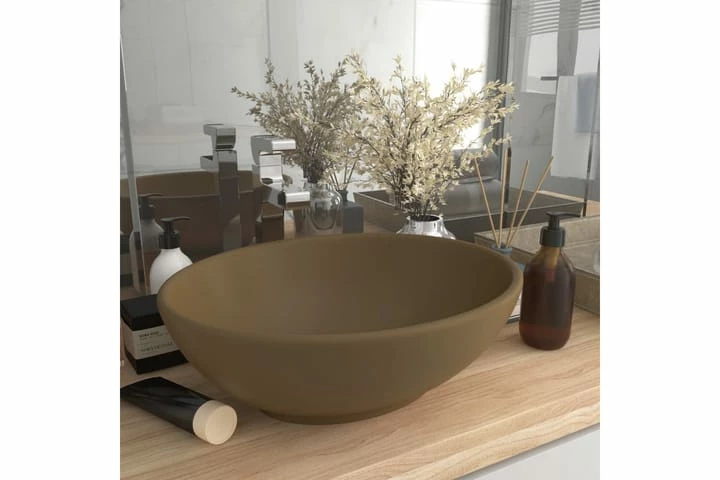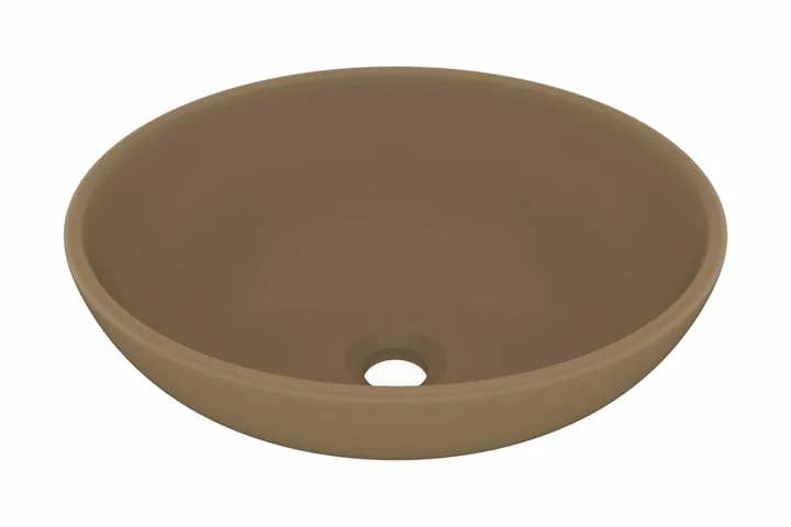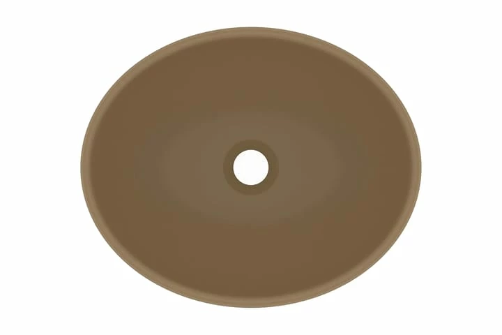 Vores ovale håndvask er lavet af keramik i høj kvalitet, og den vil være en stilfuld tilføjelse på ethvert badeværelse eller toilet. Den matte overflade og det luksuriøse design giver et moderne, men elegant look.