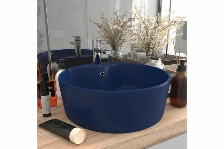 Badeværelseshåndvasken fungerer som en vask til daglig brug, og den vil også være en udsmykning i din bolig. Vasken kan placeres på toppen af vaskeskabet, og den kan ligeledes bruges i kosmetikværelset, garagen, i køkkenet eller på arbejdspladsen. Denne håndvask vil med sikkerhed passe til enhver indretning takket være dens trendy og moderne design, og den er let at rengøre. Den matte overflade og det luksuriøse design føjer et charmerende præg til dit badeværelse. Vasken er forsynet med et overløb, så vandet effektivt flyder ud, når den er fyldt. Stenvasken har ligeledes et vandhanehul til installation af en vandhane.