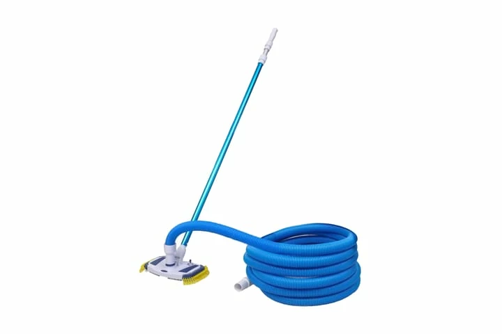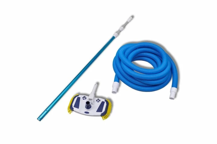 Dette poolstøvsugersæt vil være til stor hjælp under rengøringen af din pool. Teleskopstangen i aluminium kan justeres fra 1,2 til 3,6 m. På den måde kan du rengøre større bassiner med snilde. Børstehovedet med 7 bundbørster og 2 sidebørster sikrer, at arbejdet bliver gjort ordentligt. Med en 10 m lang og Φ38 mm slange kan børstehovedet tilsluttes en vandpumpe for at danne et rengøringssytem. Hele støvsugersættet består af et børstehoved, en aluminiumstang og en slange. Du kan tilkøbe en ekstra stang (SKU 90507) eller et nyt børstehoved (90508) på vores webshop.